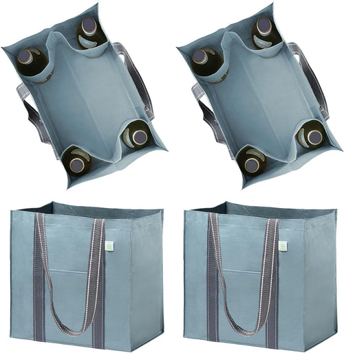 - 4 Inner Sleeves to Hold Drinks – Fit, separate, and organize your water bottles, coffee tumblers, or wine bottles in the 4 inner sleeves designed for convenient storing of drinks or other grocery items. Easily find and grab your water bottle without having the search and rummage through the bag. You don’t have to worry about your heavy liquids crushing any of your delicate groceries either!