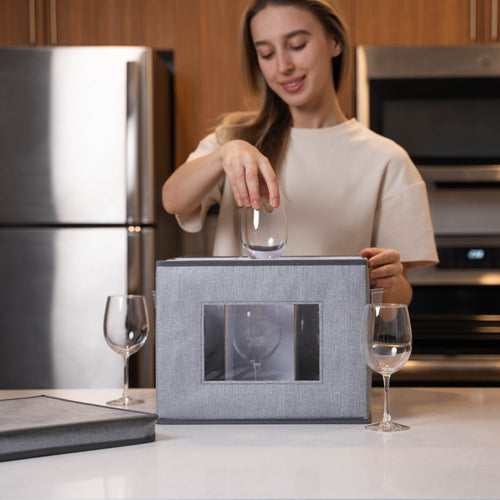 - Sturdy & Stable with Hard Bottom – You don’t have to worry about your glasses falling over or wobbling around. Keep your glass essentials perfectly standing with our reusable and sustainable storage box which contains a hard bottom to keep your glasses stable and standing upright for easy loading and transporting. Easily transport your glasses to your friend’s gathering or use as an alternative to moving boxes when moving your glasses cross country.